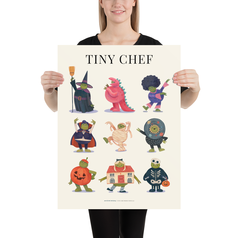 Chef couldn’t decide on just one costume, so he chose to wear them all! Hang this spooky but adorable poster on Malloween and beyond to have Chef by your side 365! Printed on 10.3mil thick paper with 104% ISO brightness, and sourced from Japan, it’s sure to be the home decor all your fwends are talking about!